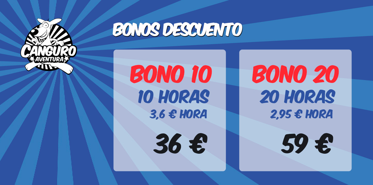 En Canguro Aventura queremos que venir a jugar sea siempre una buena idea, por eso te ofrecemos bonos especiales y ofertas por tiempo limitado para que puedas aprovechar al máximo nuestras instalaciones y servicios. Disponemos de bonos de entradas por horas, descuentos en cumpleaños contratados con antelación y promociones exclusivas en fechas especiales como Navidad, verano o Halloween.
